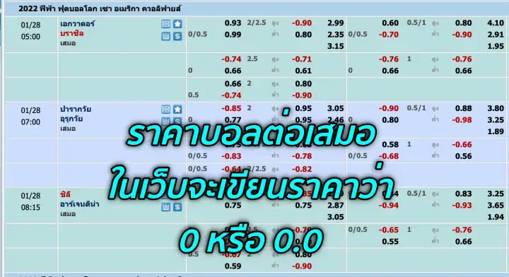 การเลือกแทงบอลราคาเสมอในโพยบอลกับโต๊ะทั่วไปนั้น มันจะเขียนเลยว่า เสมอ หรืออาจจะไม่เขียนราคา แต่เขียนเป็นค่าน้ำมาเฉยๆ แต่ถ้าเลือกแทงในเว็บ จะมีเขียนว่า 0 หรือ 0.0 ครับ