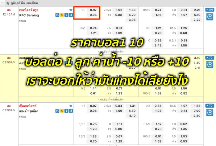 ราคาบอล 1 10 ราคานี้ต่อ หนึ่งลูก แต่ค่าน้ำ -10 หรือ +10 - thaifun888.com