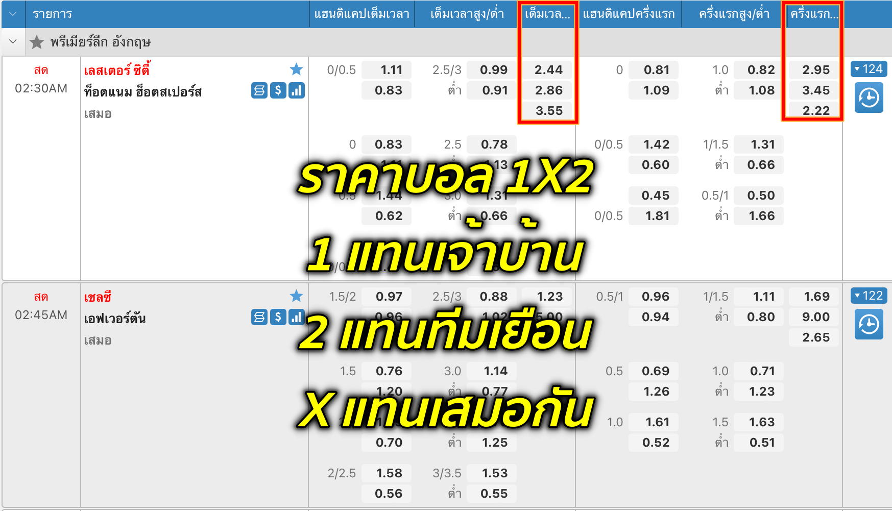 ราคาบอล 1X2 มันดูกันยังไง - thaifun888.com